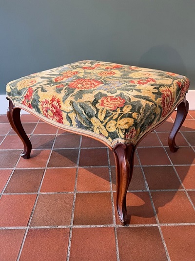 An early 20th century mahogany stool on slender cabriole legs.