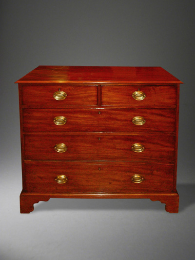George III mahogany chest of drawers in good clean condition - later brass to the oak lined drawers.