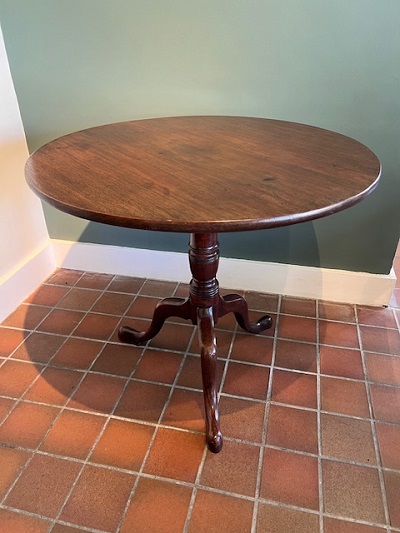 A good late 18th century George III mahogany tilt-top Supper Table – the one piece top on a vase turned column with cabriole legs and pad feet.