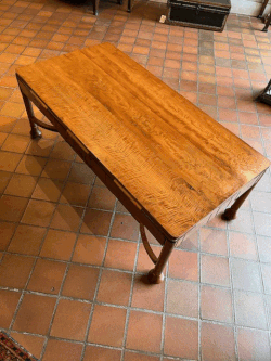 A contemporary satinwood coffee table bogwood and boxwood inlaid made by renowned Chipping Campden cabinet-maker Jeremy Green (b.1951). Much of his work was produced as private commissions, but he also sold through Gallery at the Guild in Chipping Campden. Jeremy trained with Oliver Morel (1916-2003 at Moreton in Marsh locally.